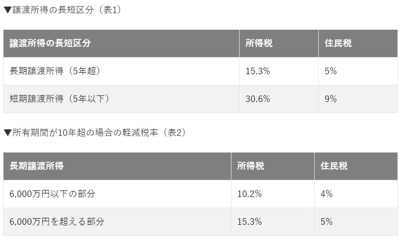 税率は不動産の所有期間によって異なります。