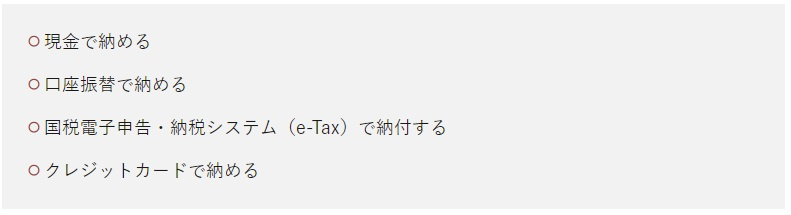 以下の方法で納税が行えます。
