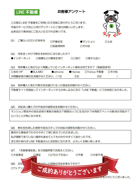 また何かあればLINE不動産さんにお世話になります。よろしくお願い致します。