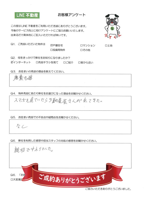 この度はご成約頂きましてありがとうございました。