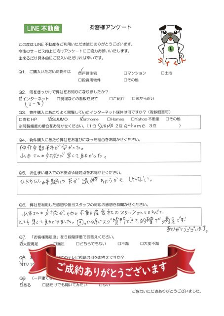 - 山本さんの対応が他の不動産会社のスタッフさんと比べて、とても早くて助かりました。