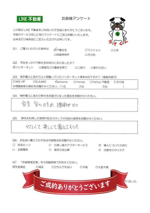 仲介手数料無料サービスにより、約84万円お得にご購入いただけたこと、またその点が弊社をお選びいただく決め手になったとのお言葉を大変嬉しく拝見しました。