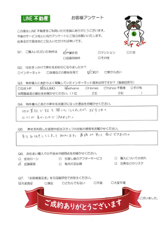 - 他の業者で話を聞いたこともあったが、紹介されて口コミが良かったので決めました。